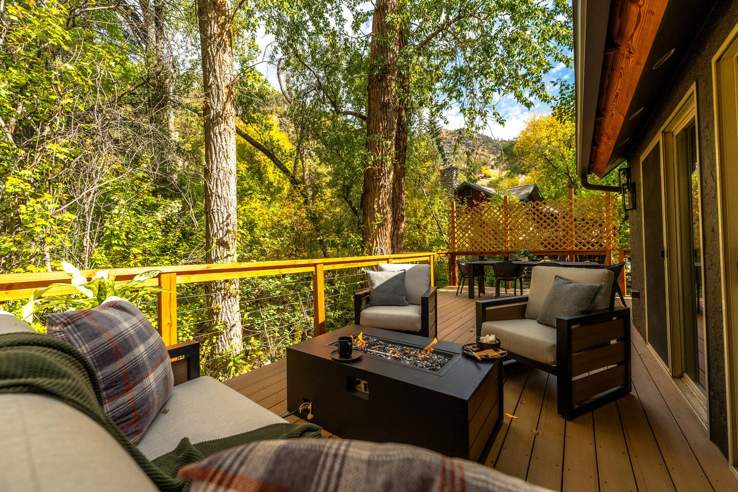 Welcome to Stormy Creek Haus — a modern mountain retreat where sleek design meets nature’s serenity. Nestled along No Name Creek in Glenwood Springs, this home was thoughtfully designed to give you an unforgettable stay. Whether you’re gathering around the firepit under the stars, enjoying a private movie night in your theater, or sipping morning coffee to the sound of the creek, every detail has been curated with you in mind. At Stormy Creek Haus, you’ll enjoy: ✔️ Private Movie Theatre for ultimate entertainment ✔️ Blackstone BBQ for grilling & outdoor dining ✔️ Outdoor Patio, Deck & Balcony with Canyon Views ✔️ Firepit & Lounge Seating under the stars ✔️ Modern Design & High-End Finishes throughout ✔️ Expansive Windows to soak in natural light & views ✔️ Creekside location—No Name Creek right at your doorstep While offering the convenience of: ✔️ 1 Mile to Downtown Glenwood Springs & Hot Springs ✔️ Easy Access to I-70 for seamless travel ✔️ Steps from the Glenwood Canyon Bike Trail ✔️ Colorado River rafting nearby ✔️ Minutes to Glenwood Adventure Park & Iron Mountain Hot Springs ✔️ Quick drive to Sunlight Ski Resort for winter fun Every space of this home has been designed to capture the beauty of Glenwood Canyon while providing modern luxury. Gather in the private movie theatre for family nights, grill on the Blackstone as the creek flows beside you, or relax with a drink on the balcony as the canyon walls glow at sunset. Perfect for adventurers, families, or anyone seeking a serene escape with the convenience of town close by, Stormy Creek Haus is a one-of-a-kind retreat that brings the best of Glenwood Springs right to your doorstep.