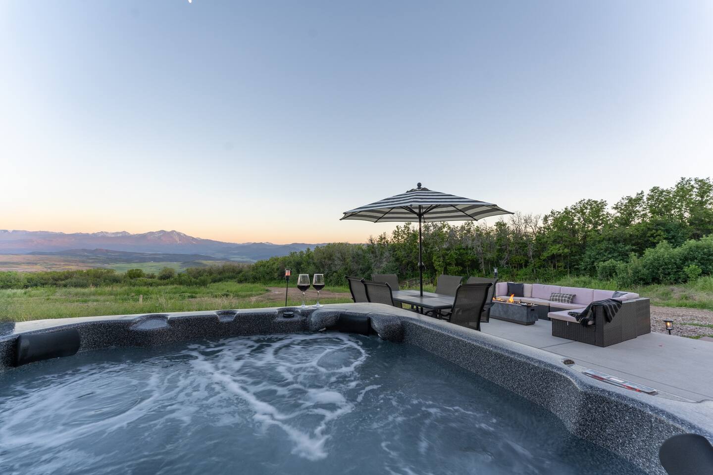 Welcome to The Lookout Ranch, a modern and luxurious home with amazing mountain views and the convenience of the famous Glenwood Hot Springs, downtown Glenwood, and Iron Mountain Hot Springs, with Aspen in the valley. Prepare to be awed by the exceptional 180-degree panoramic views of Mt. Sopris and the breathtaking Roaring Fork valley from every corner of this stunning retreat. Set amidst private acreage, The Lookout Ranch offers peace and tranquility with no nearby neighbors. Explore countless miles of mountain activities with private access to Hubbard Cave Trail and Boyscout Trail right from the property. Nestled in the Roaring Fork Valley, renowned for skiing, hiking, mountain biking, white water rafting, hunting, and fly fishing, the ranch provides the ultimate mountain getaway, all within reach of town. Savor your morning coffee on the deck or from your bedroom, where every room boasts an exceptional view. Embark on hikes along our private trails, or unwind by the indoor fireplace. Under the stars, gather around the outdoor campfire, roasting marshmallows for a perfect ending to your adventurous day. The home's comfort and relaxation welcome families, friends, and even pets. Plan an intimate romantic getaway, proposal, anniversary, or birthday, and our dedicated team will coordinate surprises to make it unforgettable. Each room is thoughtfully designed with blackout curtains and brand-new memory foam mattresses for a rejuvenating night's sleep. Enjoy fast Wi-Fi, Smart TV, fireplace, and heat radiant floors, along with provided popcorn for movie nights. The fully stocked kitchen awaits your culinary adventures, equipped with baking sheets, fondue maker, pots and pans, cutting boards, and beer and wine glasses for every occasion. Bathrooms are equipped with essential toiletries, and peaceful rainfall showers offer therapeutic relaxation. Whether you're an adventurous traveler, a young family ready to explore, a remote worker, or planning a family ski trip, The Lookout Ranch has something special for everyone. Experience a getaway like no other in the heart of nature's wonders. Book now and create cherished memories at The Lookout Ranch! Enjoy during your stay: Famous Glenwood Hot Springs Aspen & Snowmass Resort Glenwood Adventure Park World-Class Fly Fishing Famous Maroon Bells Arctic Spa 6 Person Hottub Provided Starbucks Coffee Bar, both Keurig and drip coffee with cream & sugar Indoor Fireplace & Heated Floors NEW Modern Stainless Steel Appliances Speedy Wi-Fi 55 in Smart TV & Bluetooth Speaker Outdoor Grill & Firepit with propane provided